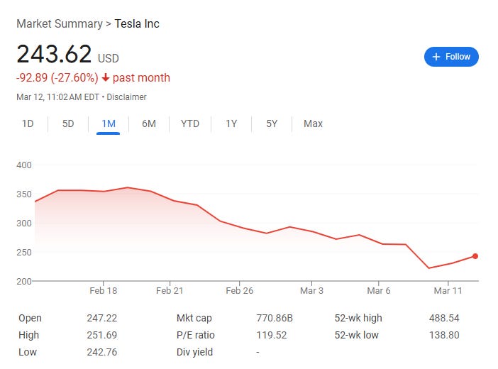 As a consequence, I’ve seen meteors fall with less intensity than Tesla’s stock price: