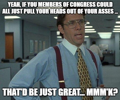 I'm so sick of hearing it - I had to write this. Congress, "Wake the hell up!" already.
