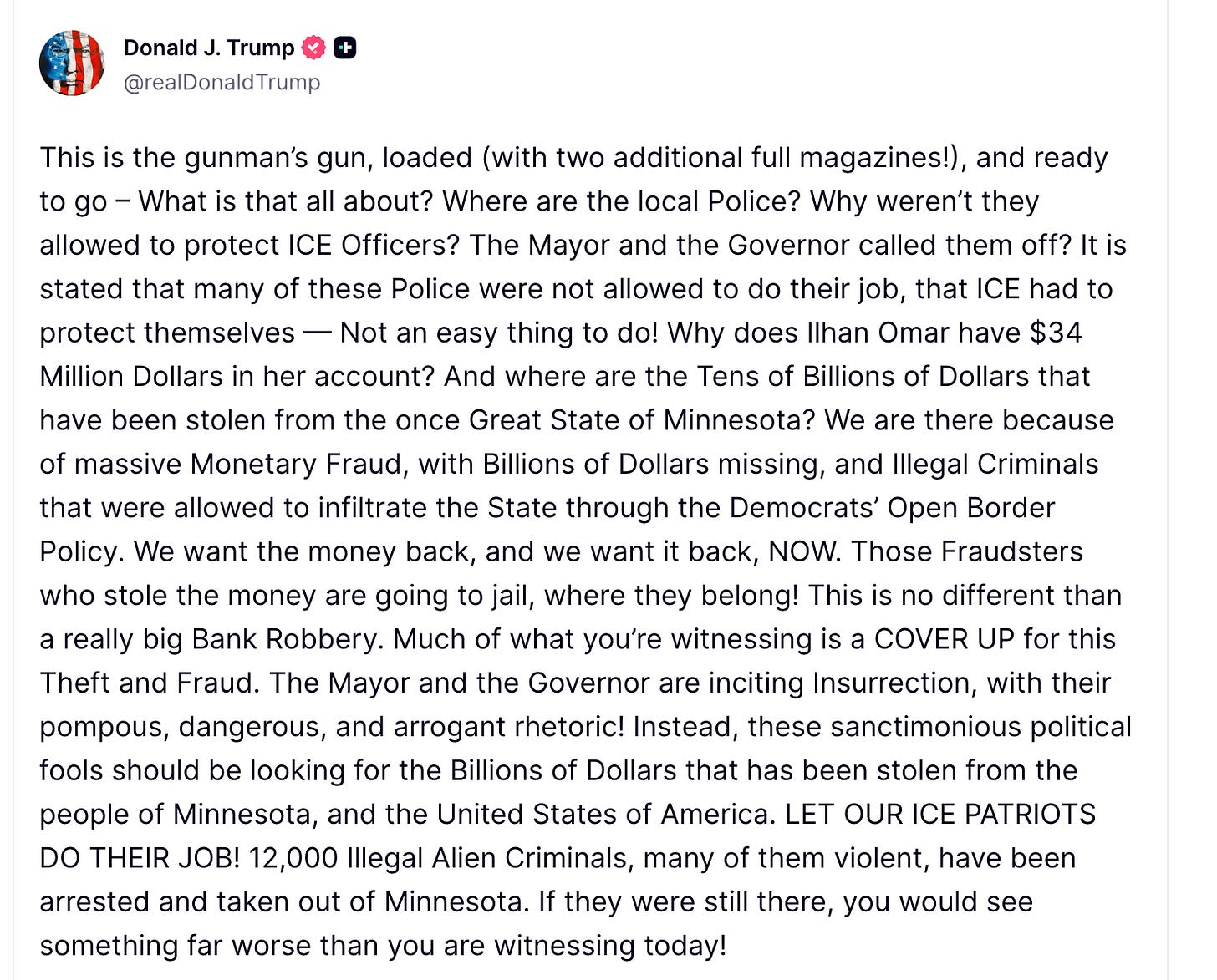 Against that backdrop, federal officials declaring the shooting “fully justified” within minutes of the incident — and only later attempting to assemble a factual narrative to support that conclusion — raises serious credibility concerns.